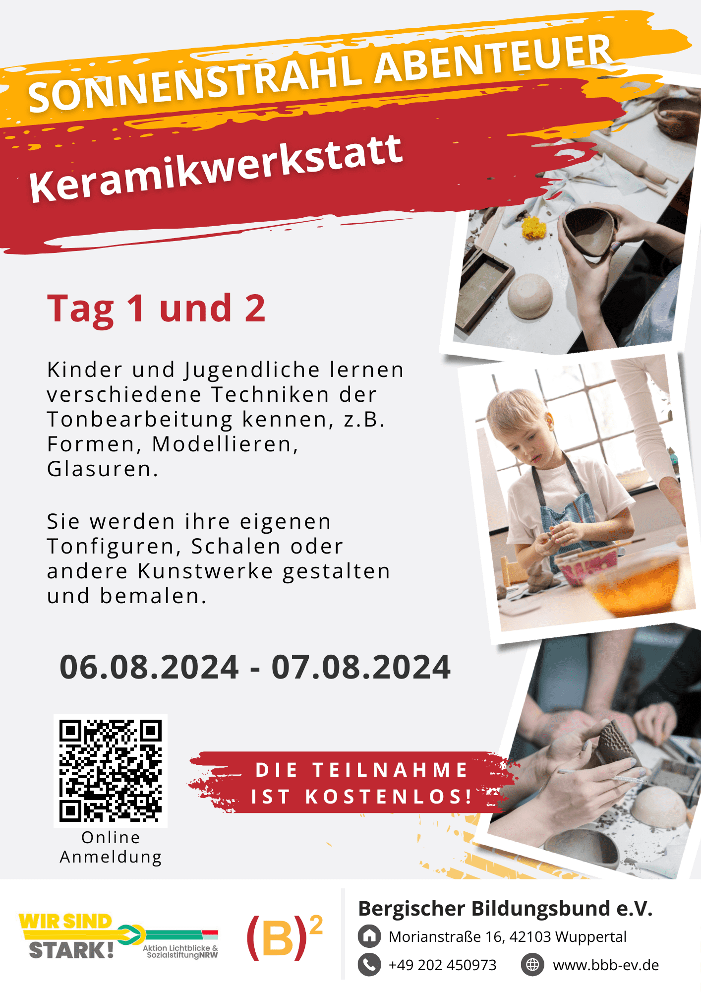 Kinder und Jugendliche lernen verschiedene Techniken der Tonbearbeitung kennen, z.B. Formen, Modellieren, Glasuren.