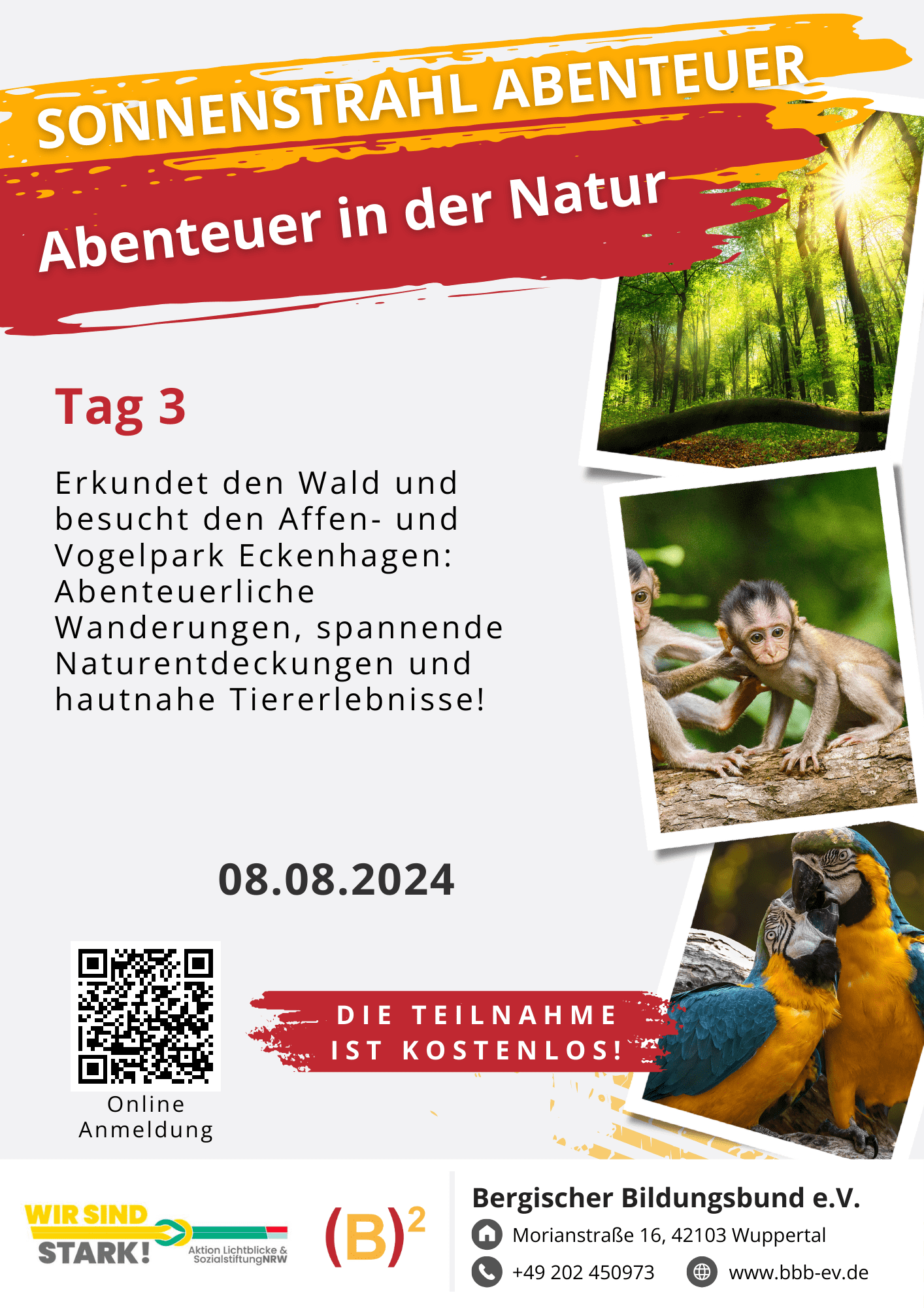 Erkundet den Wald und besucht den Affen- und Vogelpark Eckenhagen: Abenteuerliche Wanderungen, spannende Naturentdeckungen und hautnahe Tiererlebnisse!